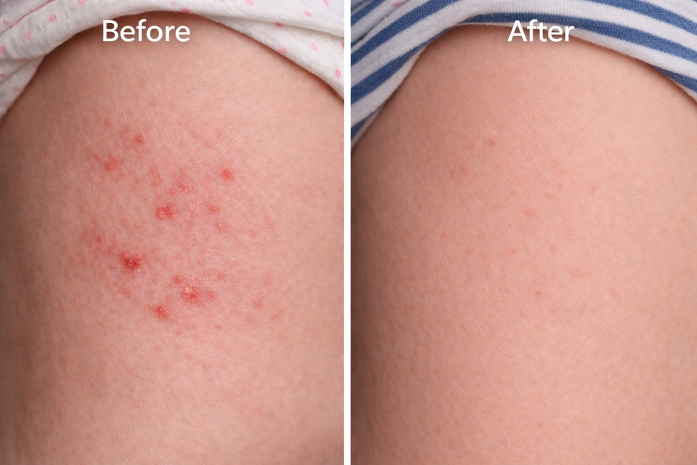 Less redness, itching, and dryness